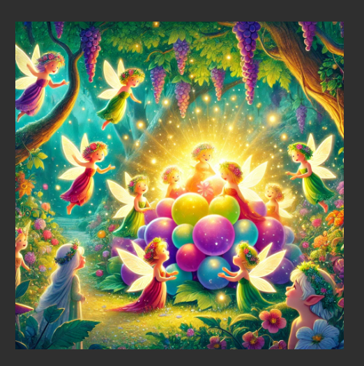 Μια φορά κι έναν καιρό, υπήρχε ένα τσαμπί σταφύλια που το αγαπούσαν πολύ οι νεράιδες. Ζούσαν σε ένα μαγικό δάσος, γεμάτο χρώματα και ευτυχία. Όμως, μια κακιά νεράιδα ζήλευε τη χαρά των άλλων και προσπάθησε να κλέψει τα σταφύλια για να κάνει τα πάντα σκοτεινά.